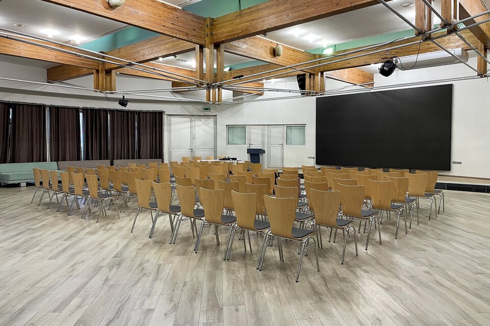 База отдыха «Галактика» рада предложить к услугам гостей почасовую аренду конференц-зала. Для различного рода мероприятий в нашем современном и комфортабельном зале можно собрать до 75 участников. Хотите ли вы провести однодневный тренинг для своих сотрудников, недельный психологический семинар, серию лекций о здоровом питании либо встретиться с партнерами для обсуждения текущих дел, наш конференц-зал подойдет для каждого.
