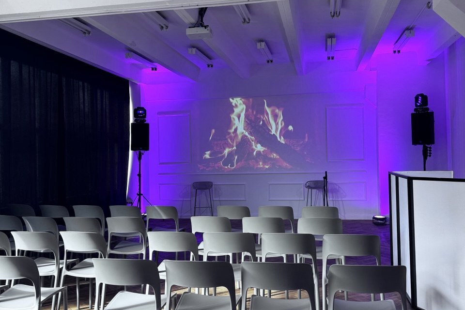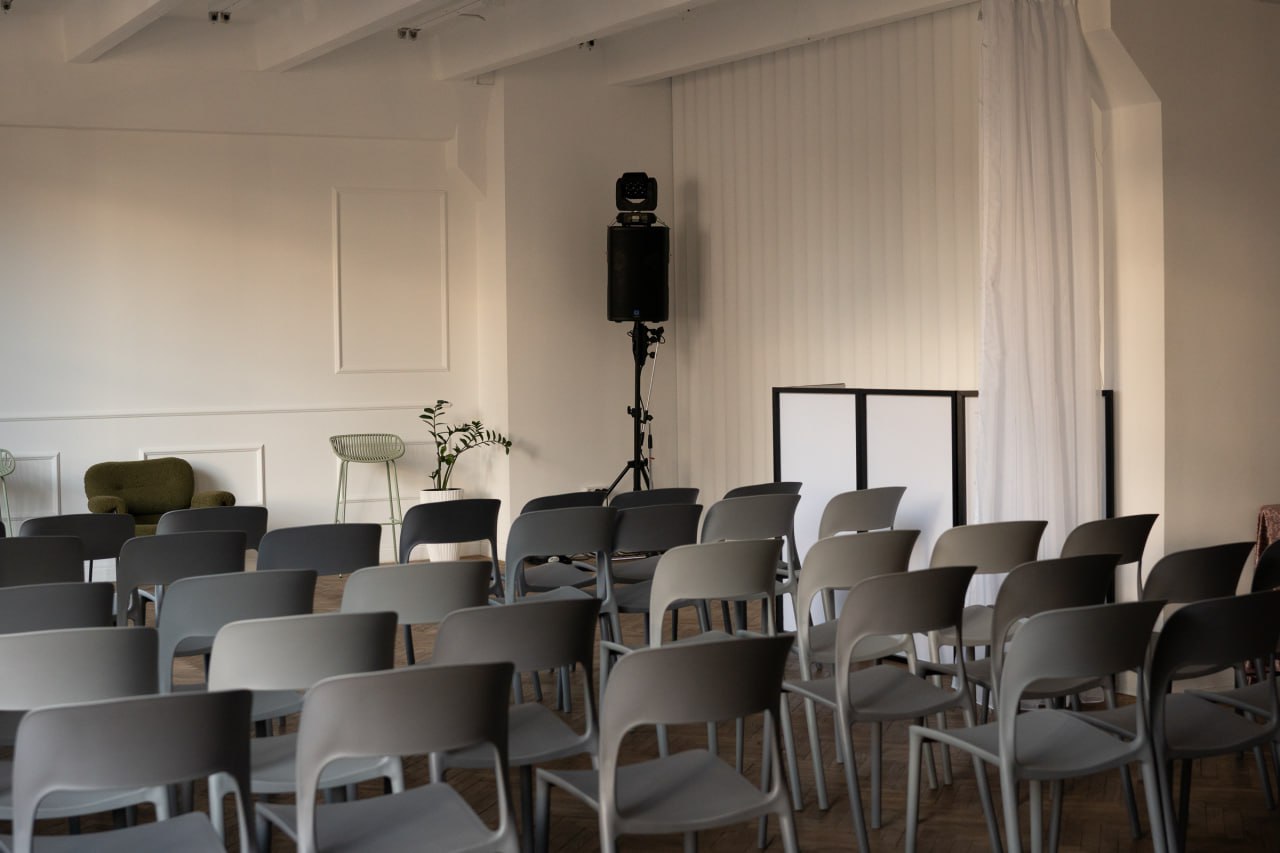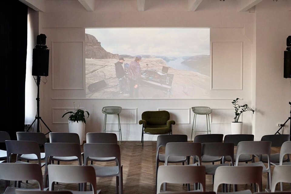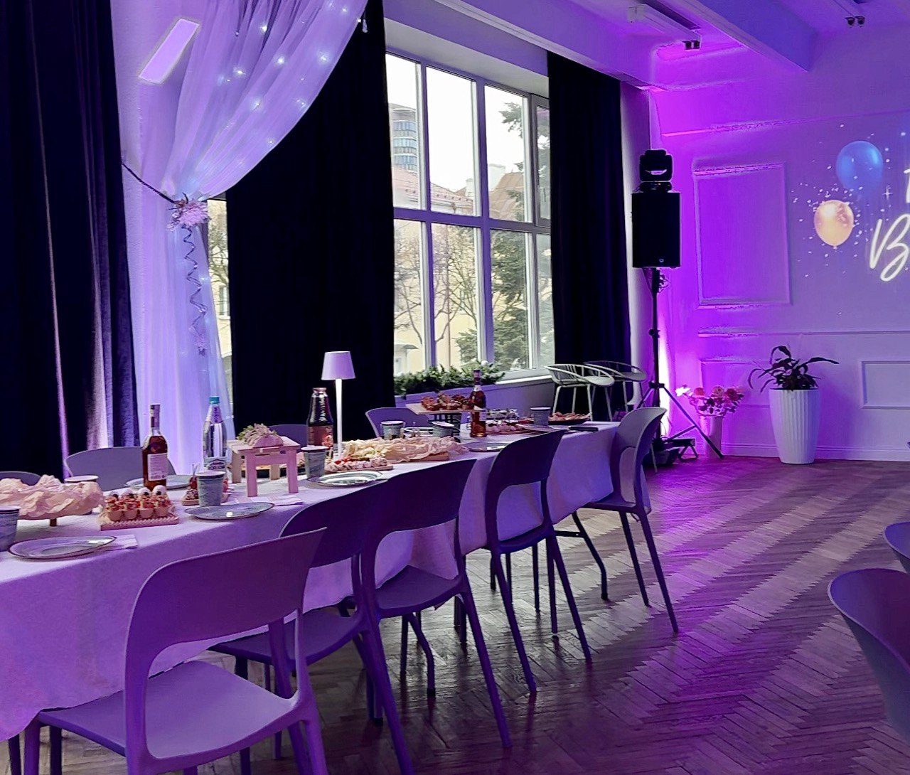 Помещение находится на втором этаже 4-х этажного здания в центре Минска (ст.м. Первомайская). Светлый зал с панорамными окнами и видом на уютную Красноармейскую улицу. Пространство включает входную зону (гардероб), зону для кофе-брейка и основной зал непосредственно для мероприятий площадью 90 кв.м. Ивент-площадка выгодно отличается уютной обстановкой, где вы можете перемещать мебель на свое усмотрение. Есть удобное рабочее место для звукорежиссера/диджея.