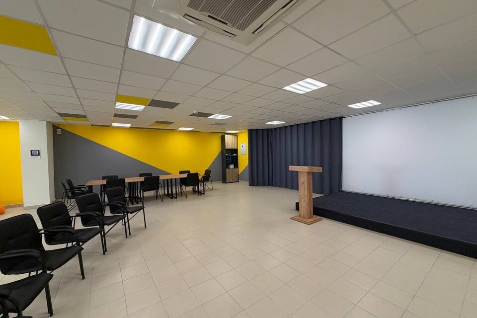 Конференц зал на Боровой «Бизнес-лаборатория» — просторное многофункциональное помещение общей площадью 250 м2. Идеально подходит для проведения бизнес-мероприятий, конференций, тренингов, семинаров, курсов, лекций, мастер-классов и презентаций.Зал рассчитан на размещение разных по количеству групп в зависимости от формата мероприятия. Имеет две зоны. Одна - для проведения деловых мероприятий, другая - для организации кофе - пауз. Помещение оснащено: лазерным проектором, экраном для проектора, флип-чартом, Wi-Fi, есть базовый набор мебели (столы, стулья), бесплатный паркинг.