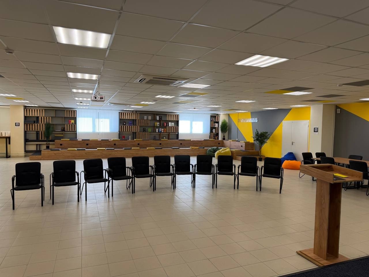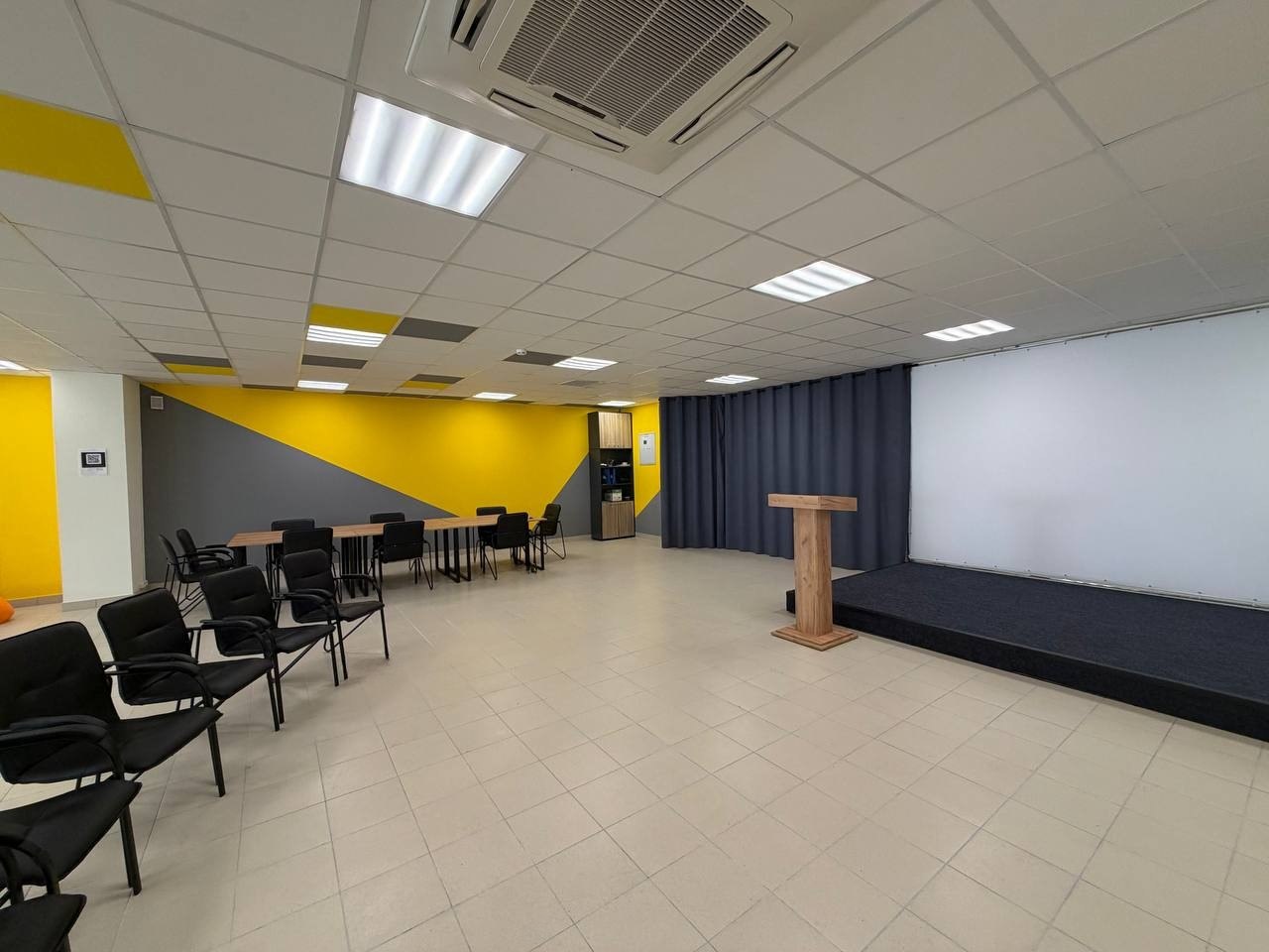 Конференц зал на Боровой «Бизнес-лаборатория» — просторное многофункциональное помещение общей площадью 250 м2. Идеально подходит для проведения бизнес-мероприятий, конференций, тренингов, семинаров, курсов, лекций, мастер-классов и презентаций.Зал рассчитан на размещение разных по количеству групп в зависимости от формата мероприятия. Имеет две зоны. Одна - для проведения деловых мероприятий, другая - для организации кофе - пауз. Помещение оснащено: лазерным проектором, экраном для проектора, флип-чартом, Wi-Fi, есть базовый набор мебели (столы, стулья), бесплатный паркинг.