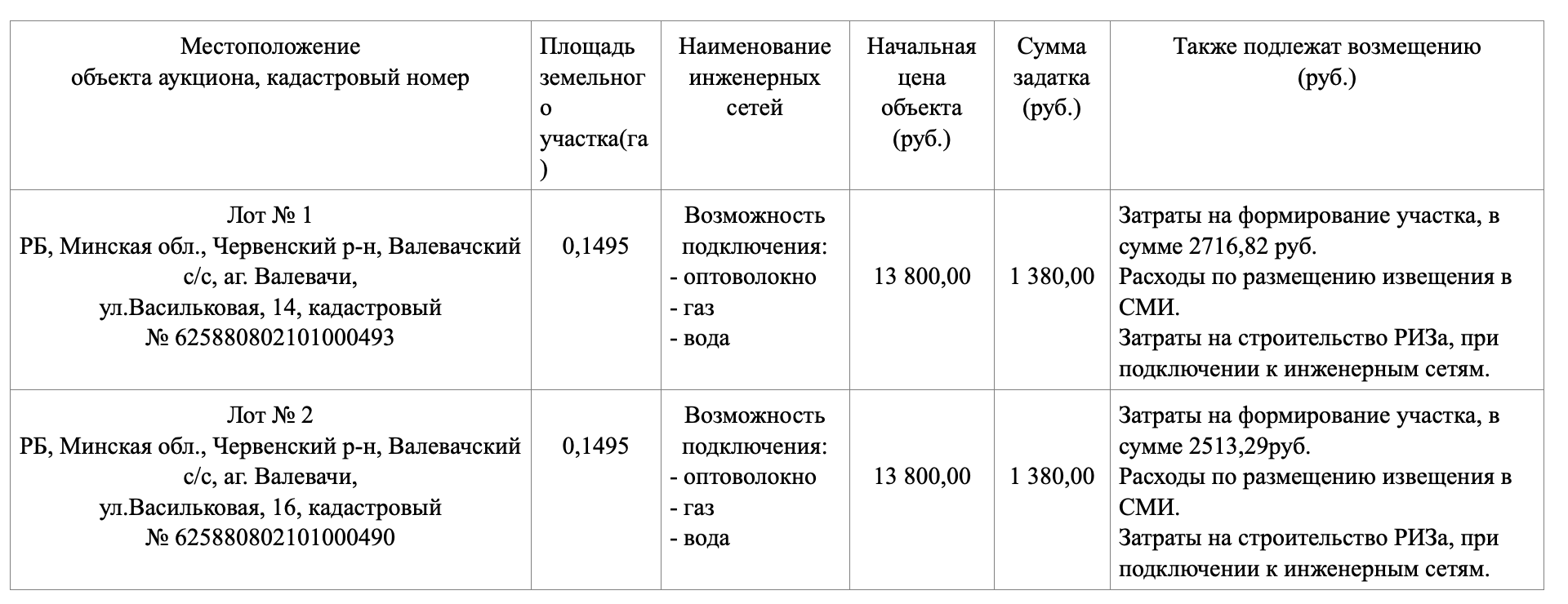 Организатор аукциона – Валевачский сельский исполнительный комитет
