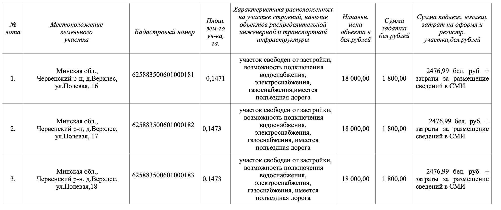 1. Аукцион состоится 4 мая 2026 г. в 11 часов 00 минут в здании Смиловичского сельского исполнительного комитета по адресу: Минская область, Червенский район, г.п. Смиловичи, ул. Максима Горького, 8.