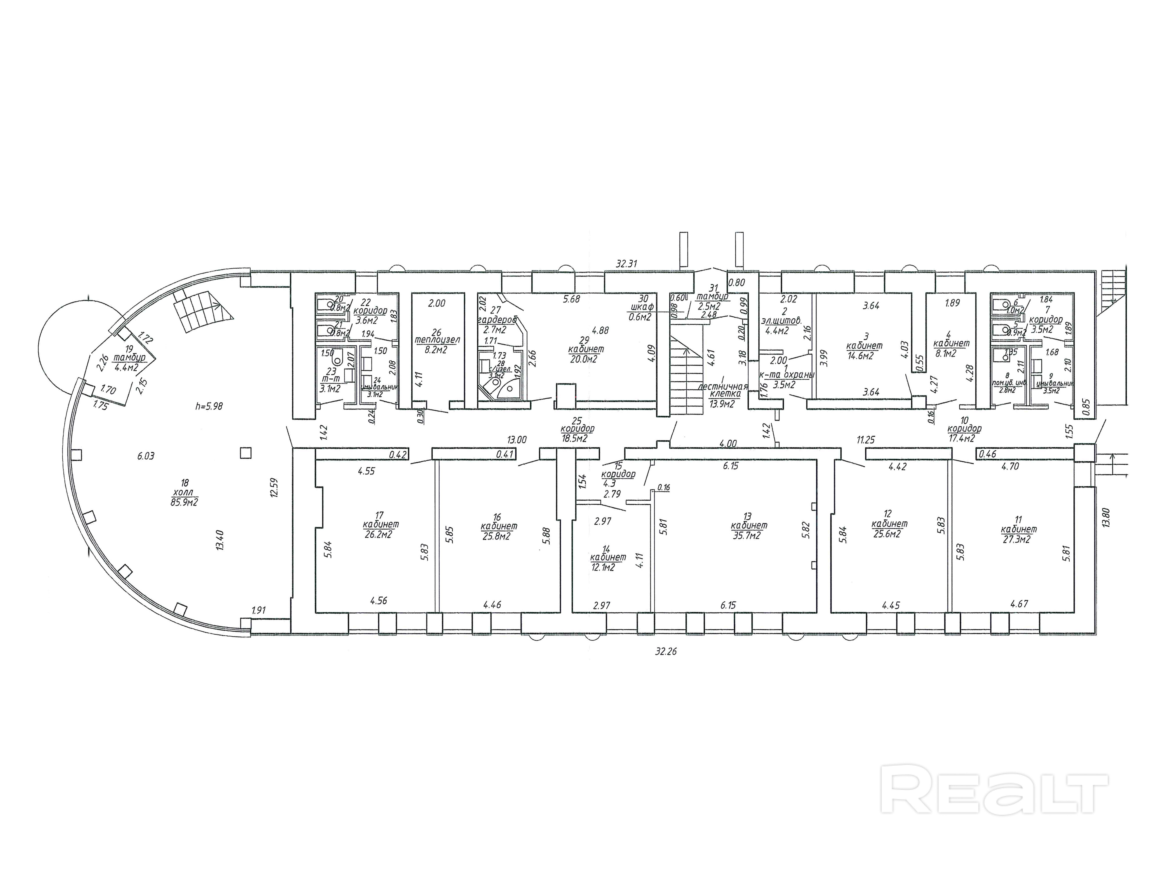 Помещение сочетает в себе формат открытого пространства и отдельных кабинетов с возможностью установки дополнительных перегородок.