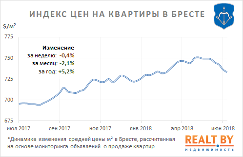 За неделю с 18 по 25 июня информационно-аналитическим центром Realt.by были отмечены следующие изменения на первичном и вторичном рынках недвижимости города Бреста: