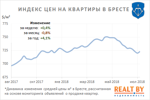 За неделю с 30 июля по 6 августа информационно-аналитическим центром Realt.by были отмечены следующие изменения на первичном и вторичном рынках недвижимости города Бреста: