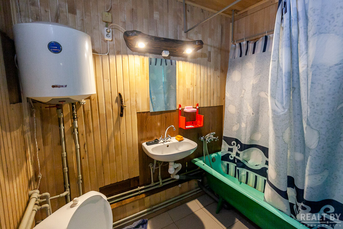 Санузел оборудован ванной. Благодаря бойлеру в доме круглый год есть горячая вода.