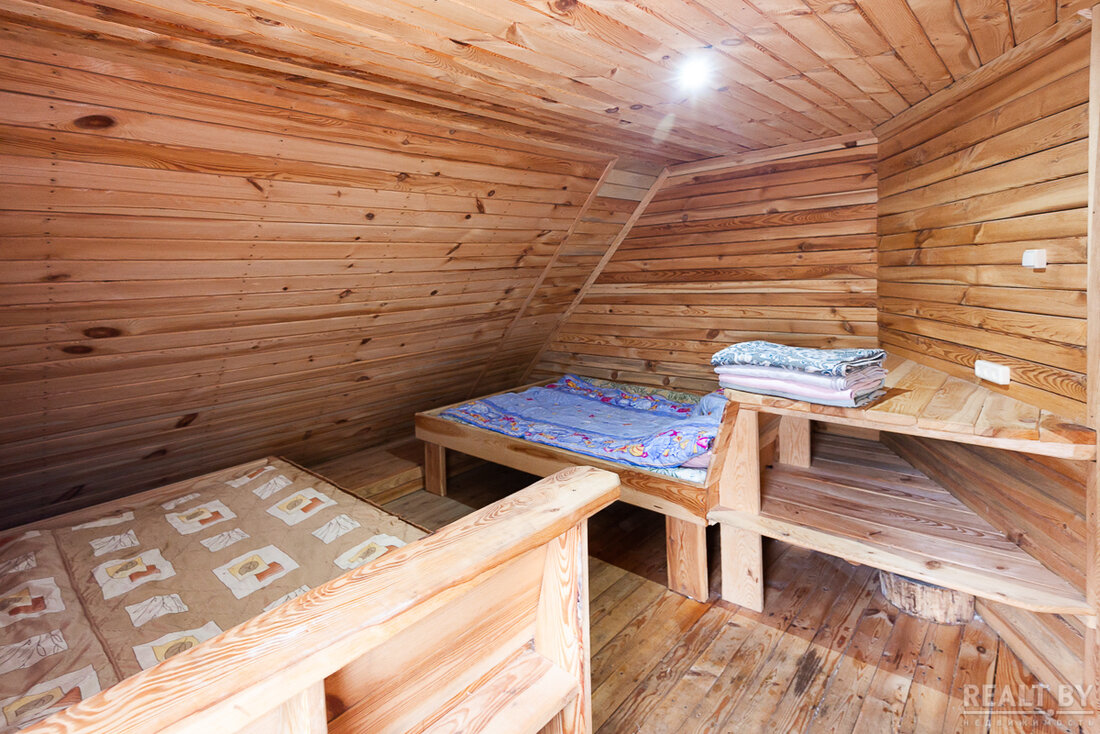 — На втором этаже бани есть большая комната и ортопедические матрацы. Если приезжает большая компания, то при желании они здесь могут ночевать, — дополняет Егор. — Летом во дворе можно разбить палатки.
