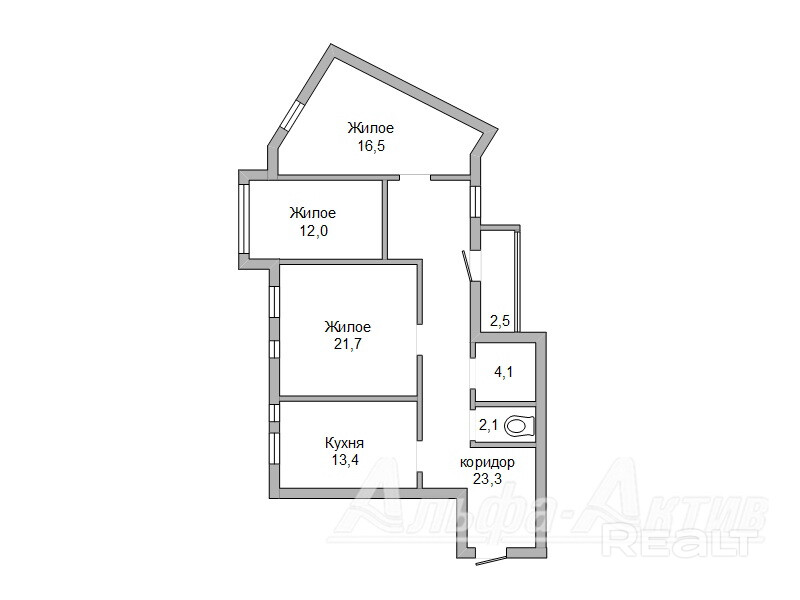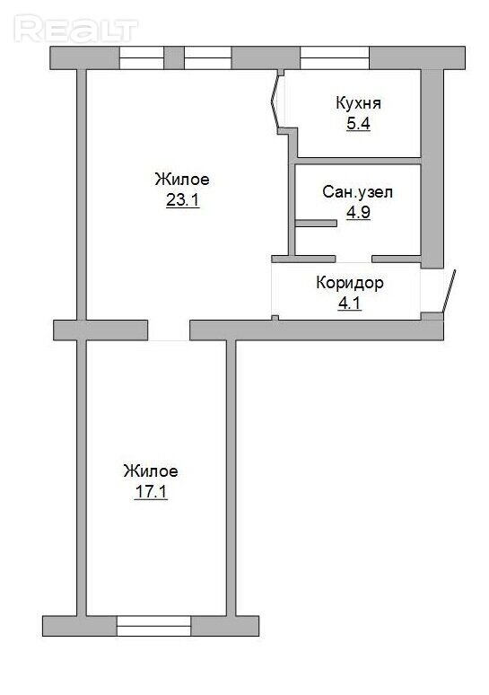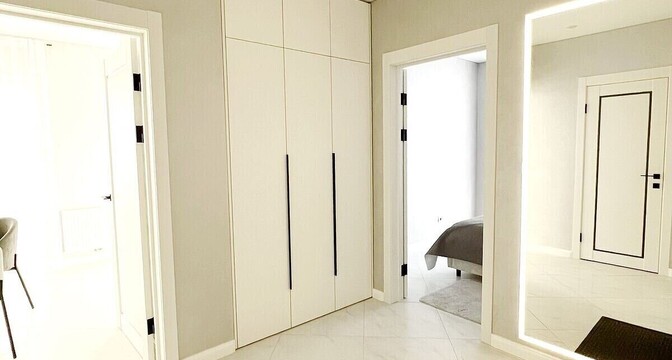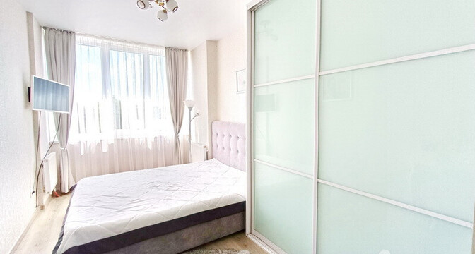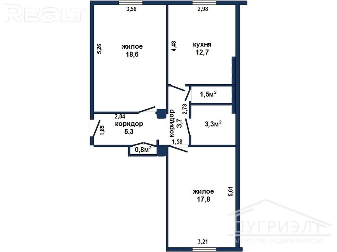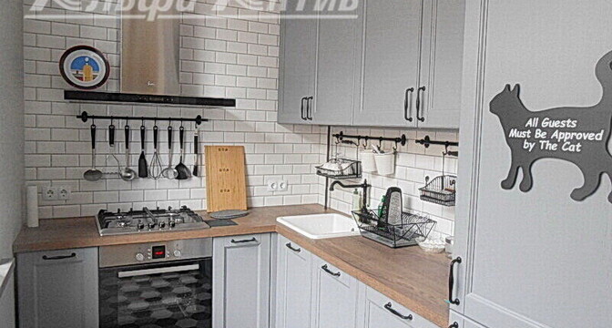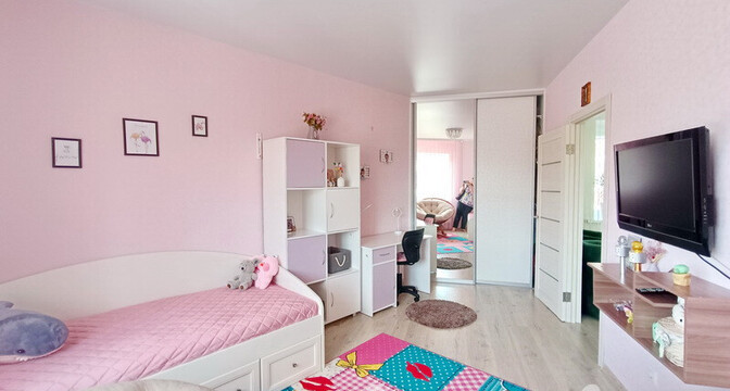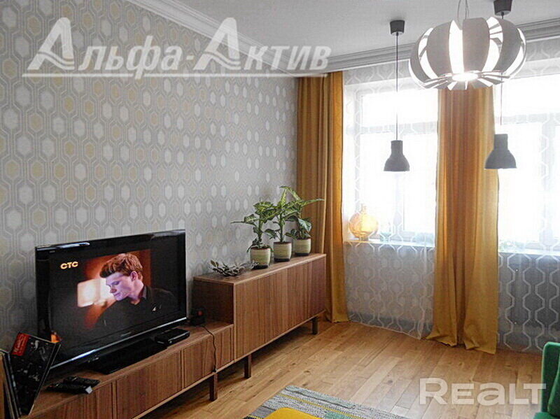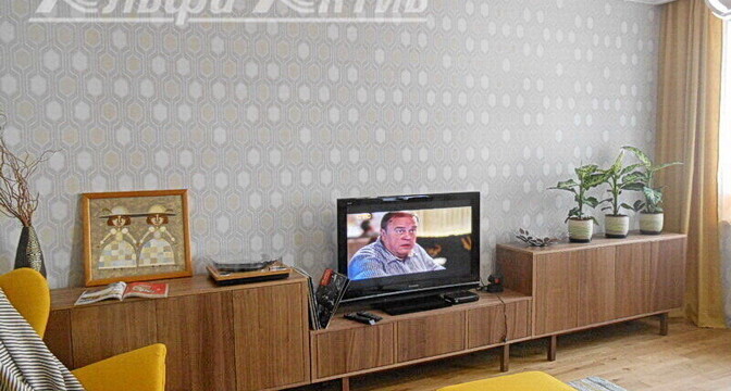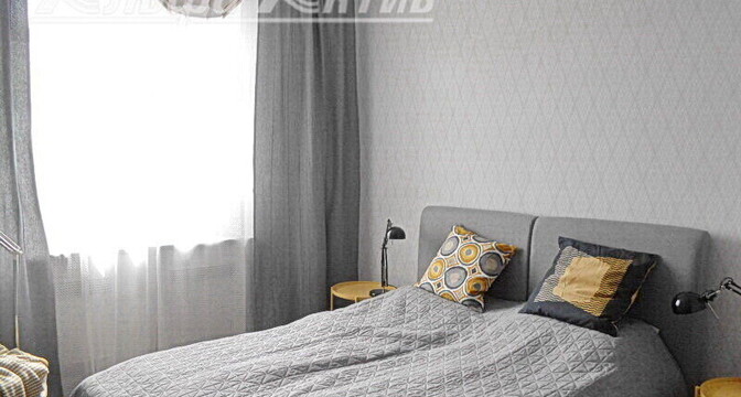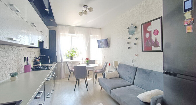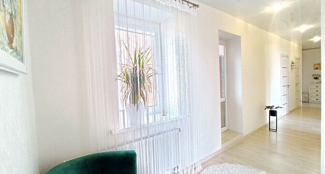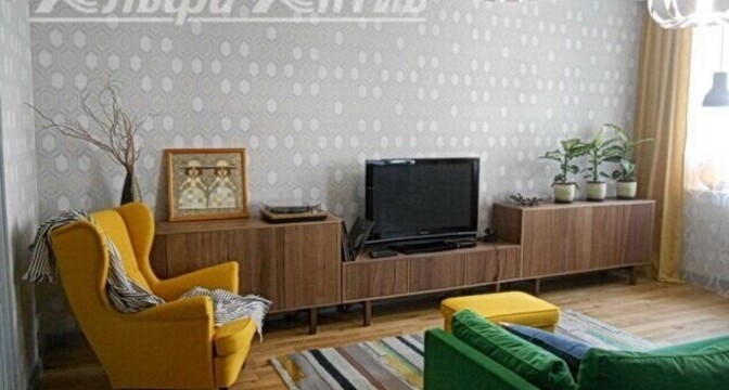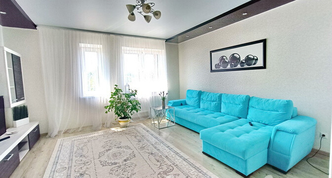Квартира расположена на седьмом этаже кирпичного десятиэтажного дома. Общая площадь — 59 квадратов, жилая — 30 метров, кухня — 11 метров. Все комнаты изолированные. На полу — кварц-винил, потолок из гипсокартона, межкомнатные двери — из экошпона.