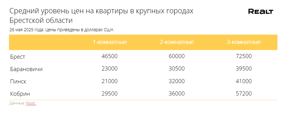 Для сравнения приведем средние цены на квартиры в других городах Беларуси: