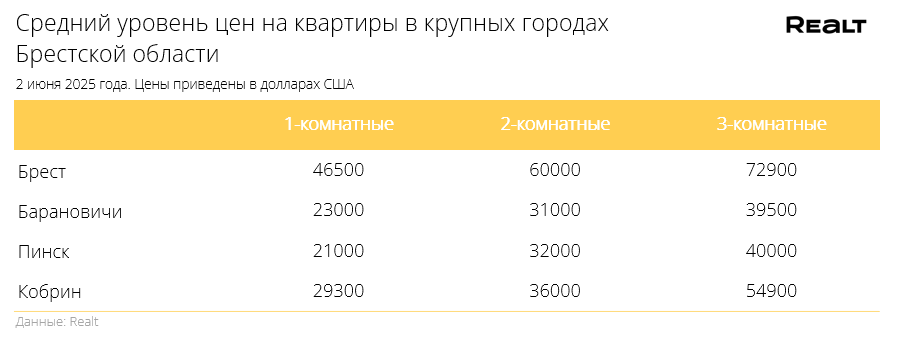 Для сравнения приведем средние цены на квартиры в других городах Беларуси: