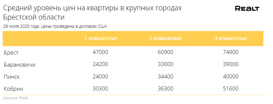 Для сравнения приведем средние цены на квартиры в других городах Беларуси: