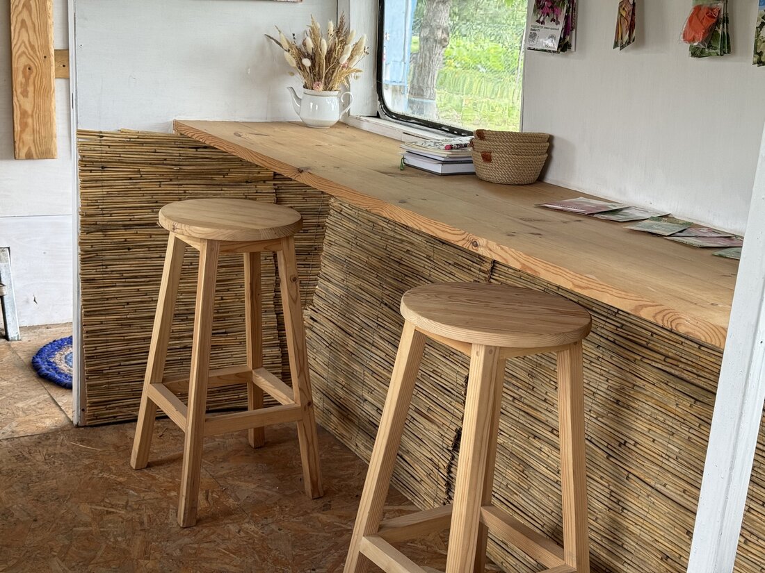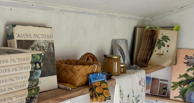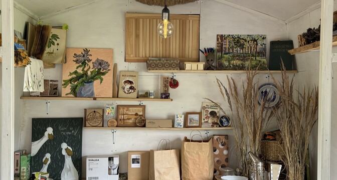 Спальное место он смастерил из поддонов. Наверх положил матрас. Рядом разместились вешалки для хранения вещей. Рабочее место, столешница и полки изготовлены из досок, которые семья перевезла из Беловежской пущи, дома бабушки и дедушки. Там они когда-то были частью сарая. Древесина довольна крепкая, да еще и связана с семьей, поэтому прописывать их в интерьер было приятно вдвойне.