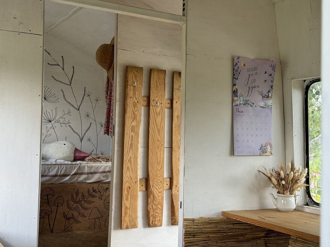 Парень обустроил в вагоне евродвушку с 7 зонами: прихожая, отопительная, спальня, кухня, гостиная, рабочее место и пространство, где Кирилл хранит подарки от подписчиков.
