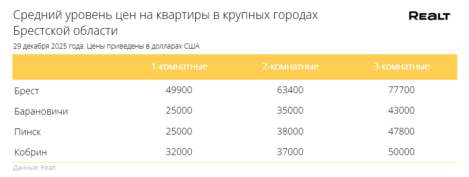 Квадрат однушек продолжает дорожать. Что произошло со стоимостью квартир в Бресте и области за 22−29 декабря 2025 года