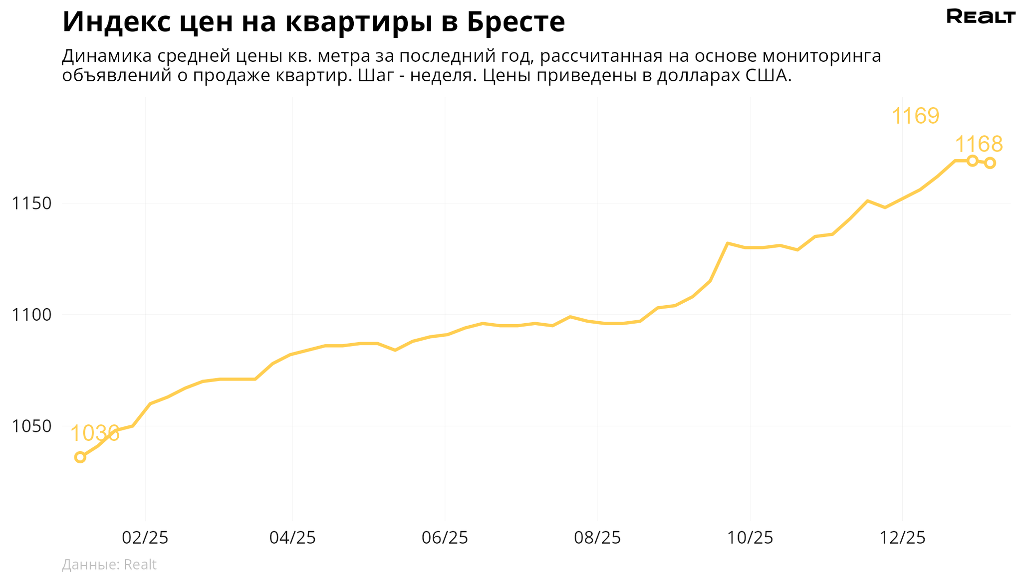 вторичный рынок (+ готовое жилье от застройщиков) — 2154 $/м2 (0.0% за неделю).