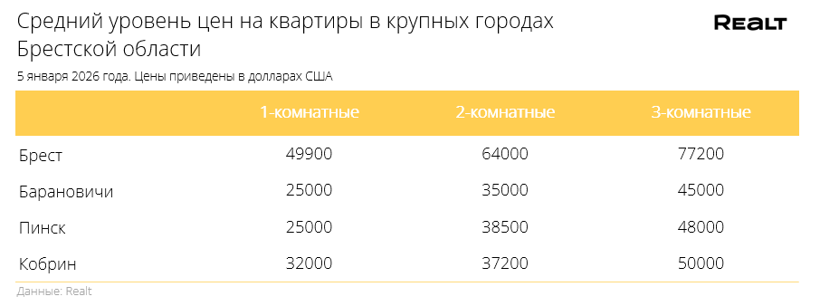Начало нового года, а однушки продолжают дорожать. Что произошло со стоимостью квартир в Бресте и области за 29 декабря — 5 января 2026 года