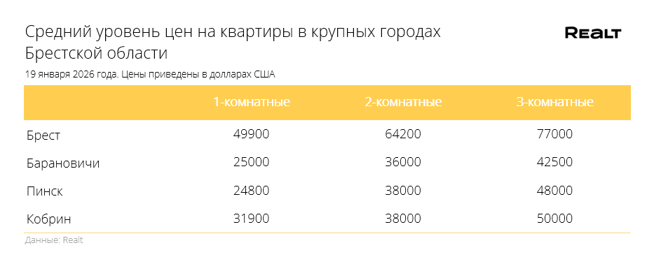 Двушки продолжают дорожать. Что произошло со стоимостью квартир в Бресте и области за 12−19 января 2026 года