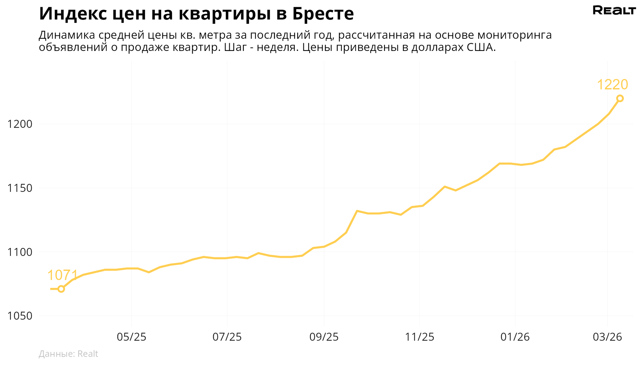 Стоимость квадрата у однушек вновь подросла. Что произошло со стоимостью квартир в Бресте и области за 2−9 марта 2026 года