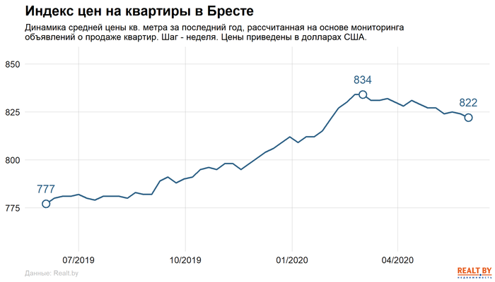 Мониторинг цен предложения квартир в Бресте и городах Брестской области за 25 мая — 1 июня 2020 года