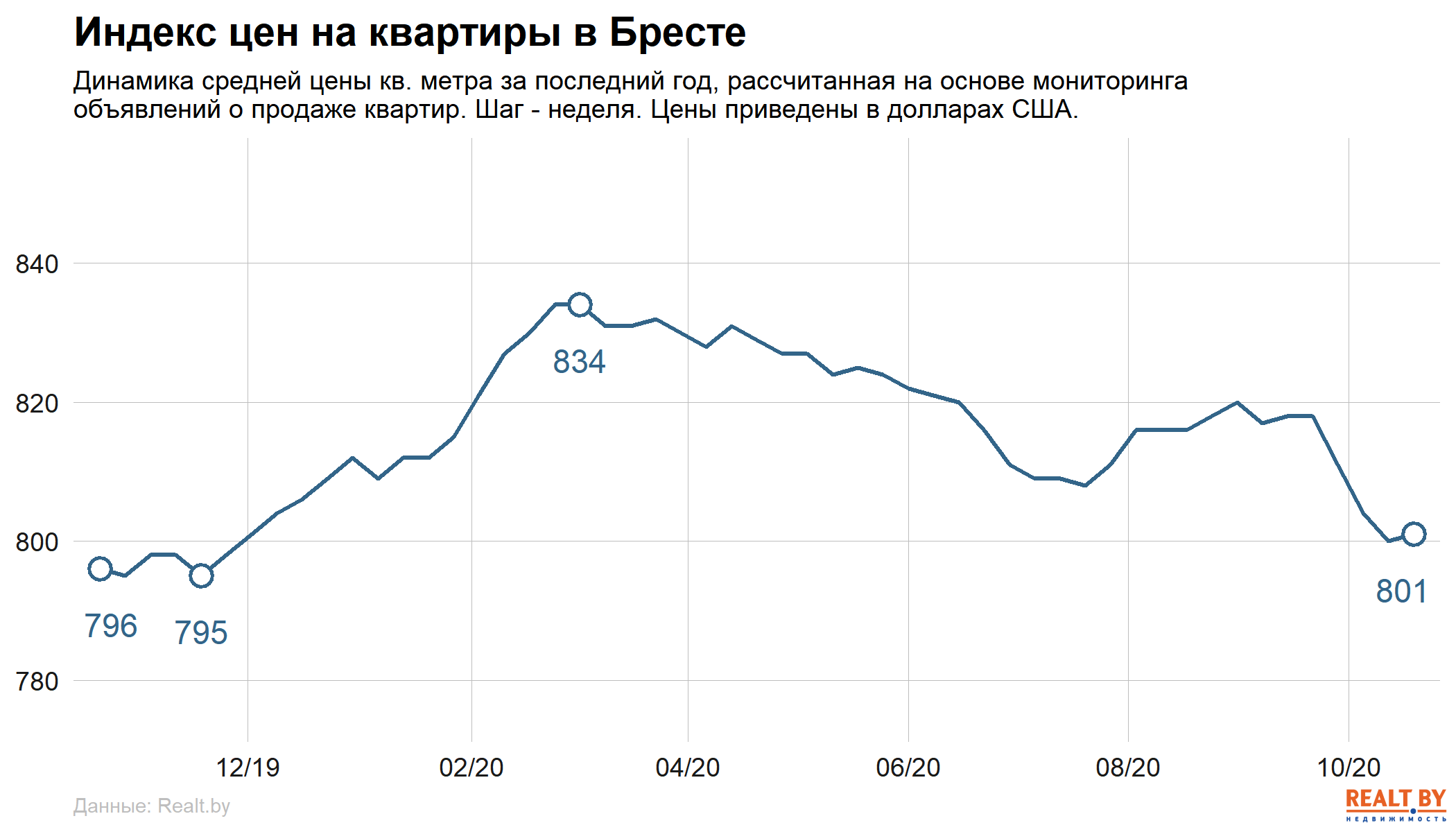 Мониторинг цен предложения квартир в Бресте и городах Брестской области за 12−19 октября 2020 года