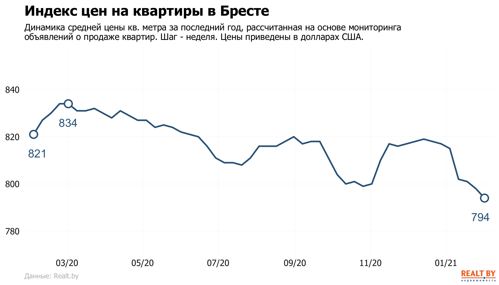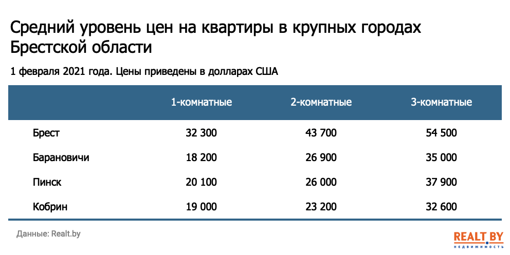 Мониторинг цен предложения квартир в Бресте и городах Брестской области за 25 января — 1 февраля 2021 года