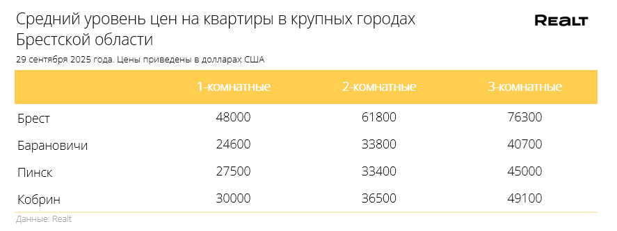 Для сравнения приведем средние цены на квартиры в других городах Беларуси: