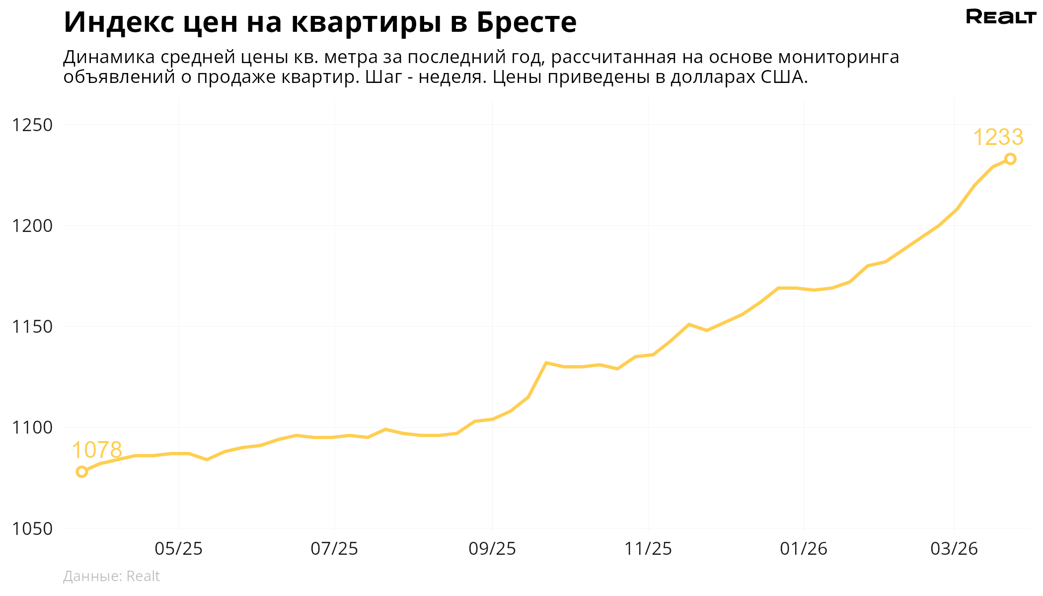 Предложение уменьшается. Что произошло со стоимостью квартир в Бресте и области за 16−23 марта 2026 года