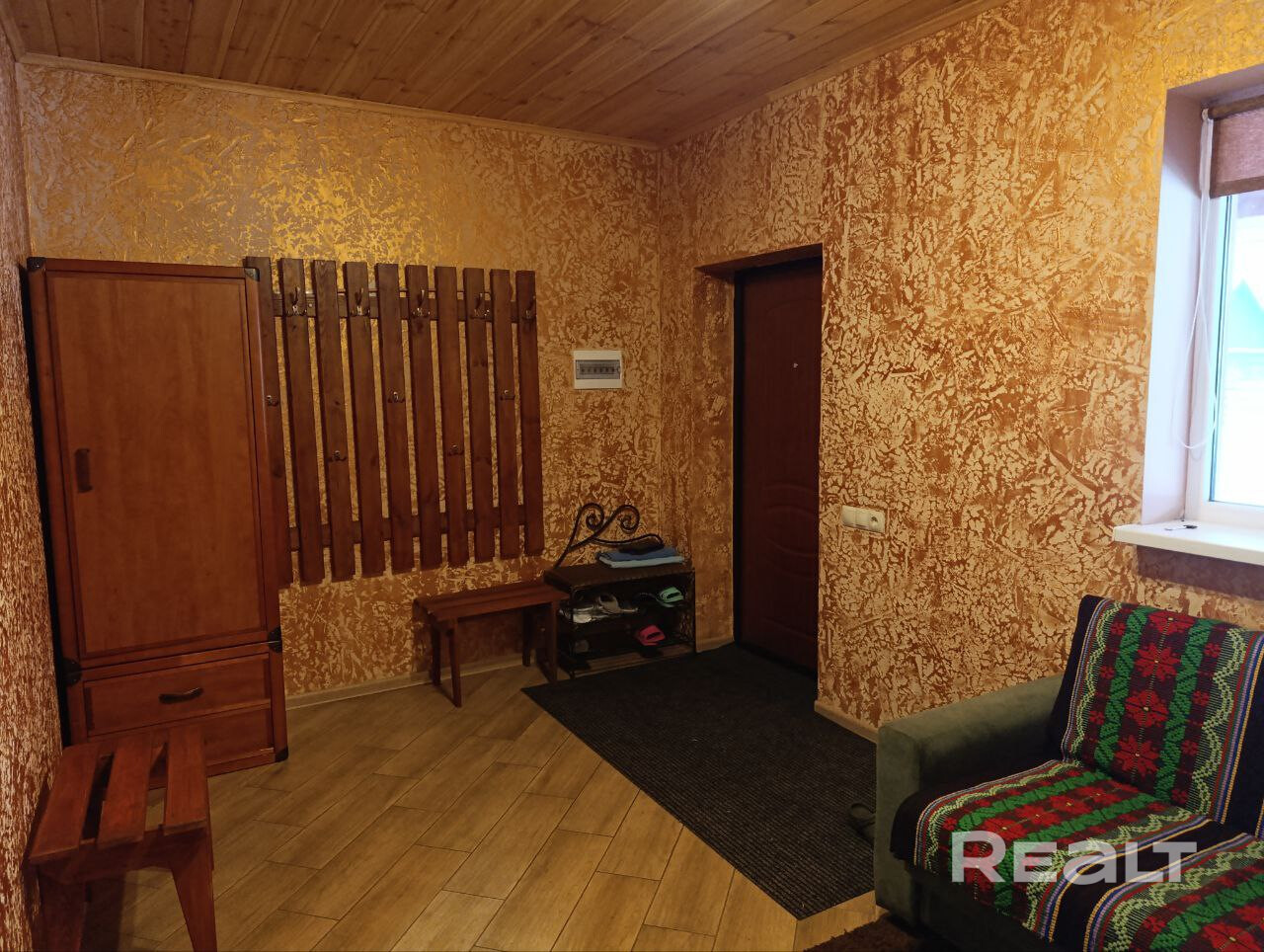 - Комфортная жилая зона: мягкая мебель, тёплый интерьер, место для общения и отдыха после бани.