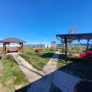 - Благоустроенная зона отдыха: мангал, беседка, баня, купель, детская площадка.