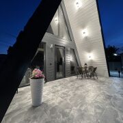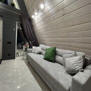 Дом-шалаш , треугольного типа, расположенный около соснового леса. Предназначен для отдыха. Рассчитан на 4 человек. Есть мангальная зона, очаг, бассейн.
