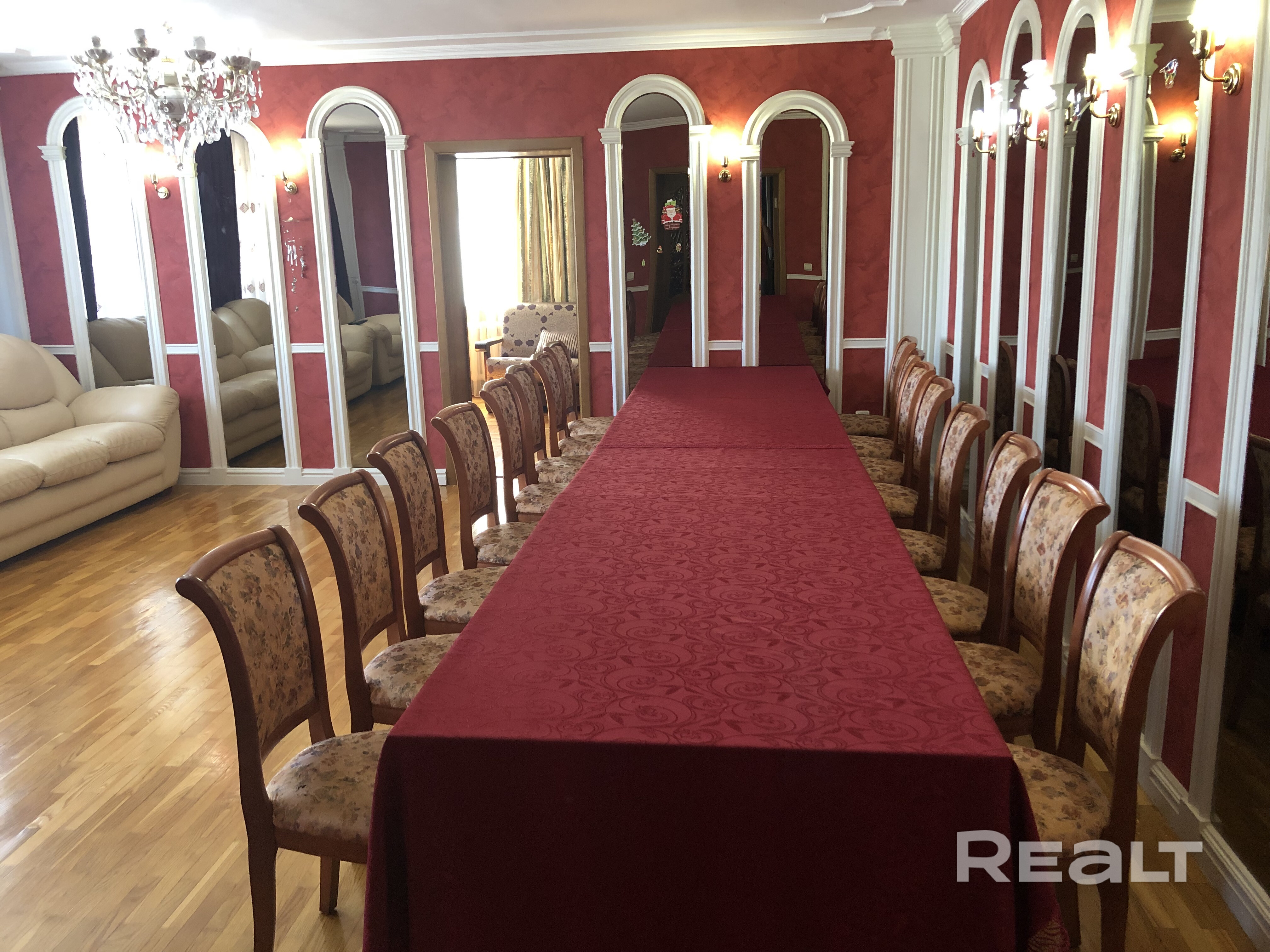 Коттедж с размещением до 23 чел, имеет на 1 этаже- кухня, столовая ,комната с 2-х спальным диваном, банкетный зал 36 м2 до 23 человек. На втором этаже-4 спальни с 2-х спальными кроватями и один 2-х спальный диван. На третьем этаже-8 спальных мест,На первом этаже есть веранда со столом и выходом во двор,она присоединена к бане,вмещает 4-8 человек одновременно,в бане свой туалет,душ,и комната отдыха.На улице беседка на 16 чел, мангал с печью для казана,шампура 15 шт и казан ,рабочий стол с мойкой