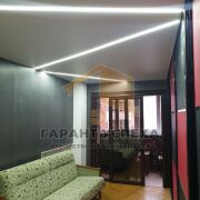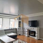 Квартира полностью отремонтирована с использованием качественных материалов: стеклопакеты, двери массив, металлическая входная дверь, натяжные потолки с неоновой подсветкой, паркетный пол из бамбука, плитка (Италия) на полу и стенах, штукатурка из гипса и фактурные обои на стенах, современная плитка и сантехника (Италия) в санузле, душевая кабина, электрокамин из гипса в зале.