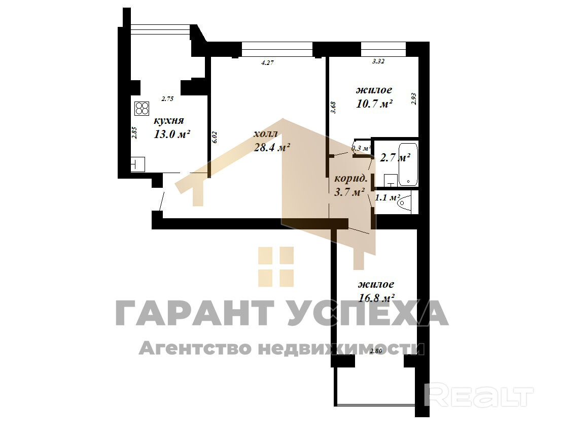ЧУП «Гарант успеха», УНП 290472700, лицензия №02240/137 от 20.10.2006 г., договор на оказание риэлтерских услуг №13/1а от 05.02.2026г.
