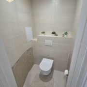 В квартире выполнен дорогостоящий ремонт в светлых тонах с использованием современных строительных и отделочных материалов премиум-класса. Наружная дверь металлическая, на полу ламинат, стены оклеены обоями, потолки натяжные с точечным освещением.