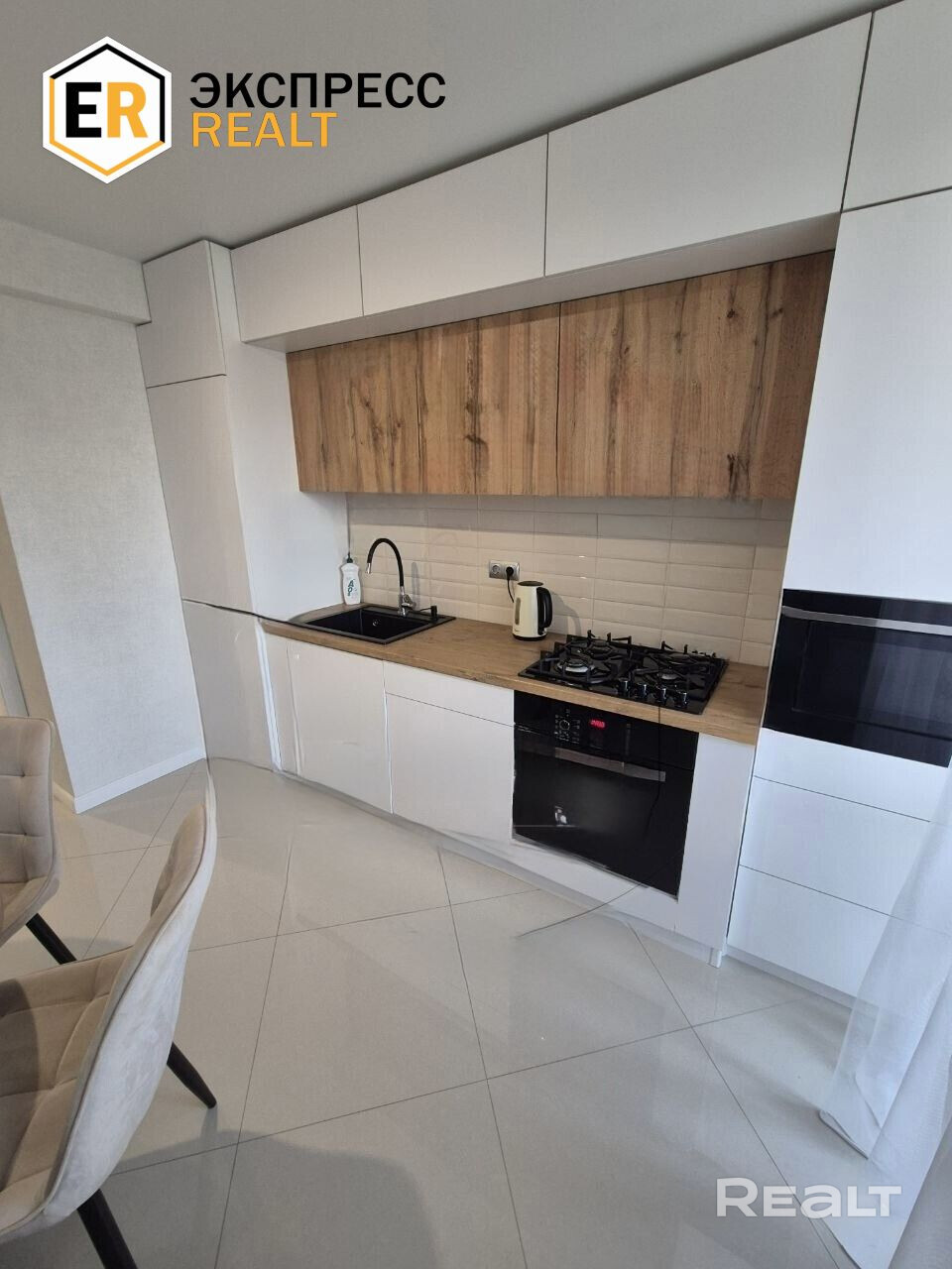 В квартире выполнено грамотное зонирование пространства. Просторный зал, кухня в которой установлен современный кухонный гарнитур со всей встроенной бытовой техникой (варочная панель, духовой шкаф, микроволновая печь), раздельный санузел.