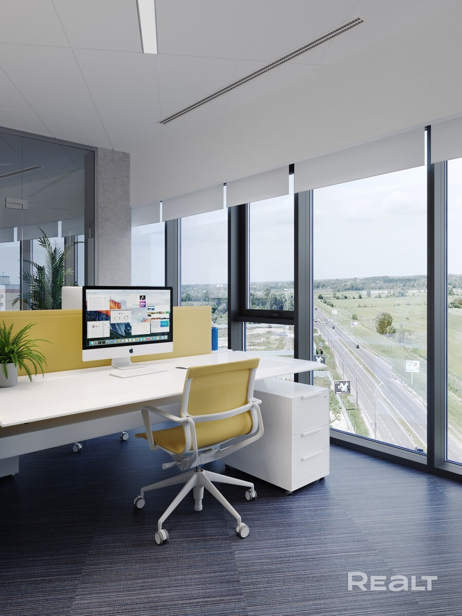 Максимальный уровень инсоляции офисов достигнут панорамным остеклением всего здания и офисов «от потолка до пола» для лучшего вида прямо с рабочего места.