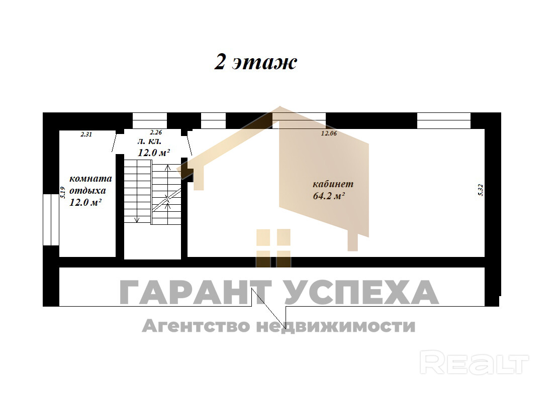 Площадь помещений составляет 64,2 и 12 м2.