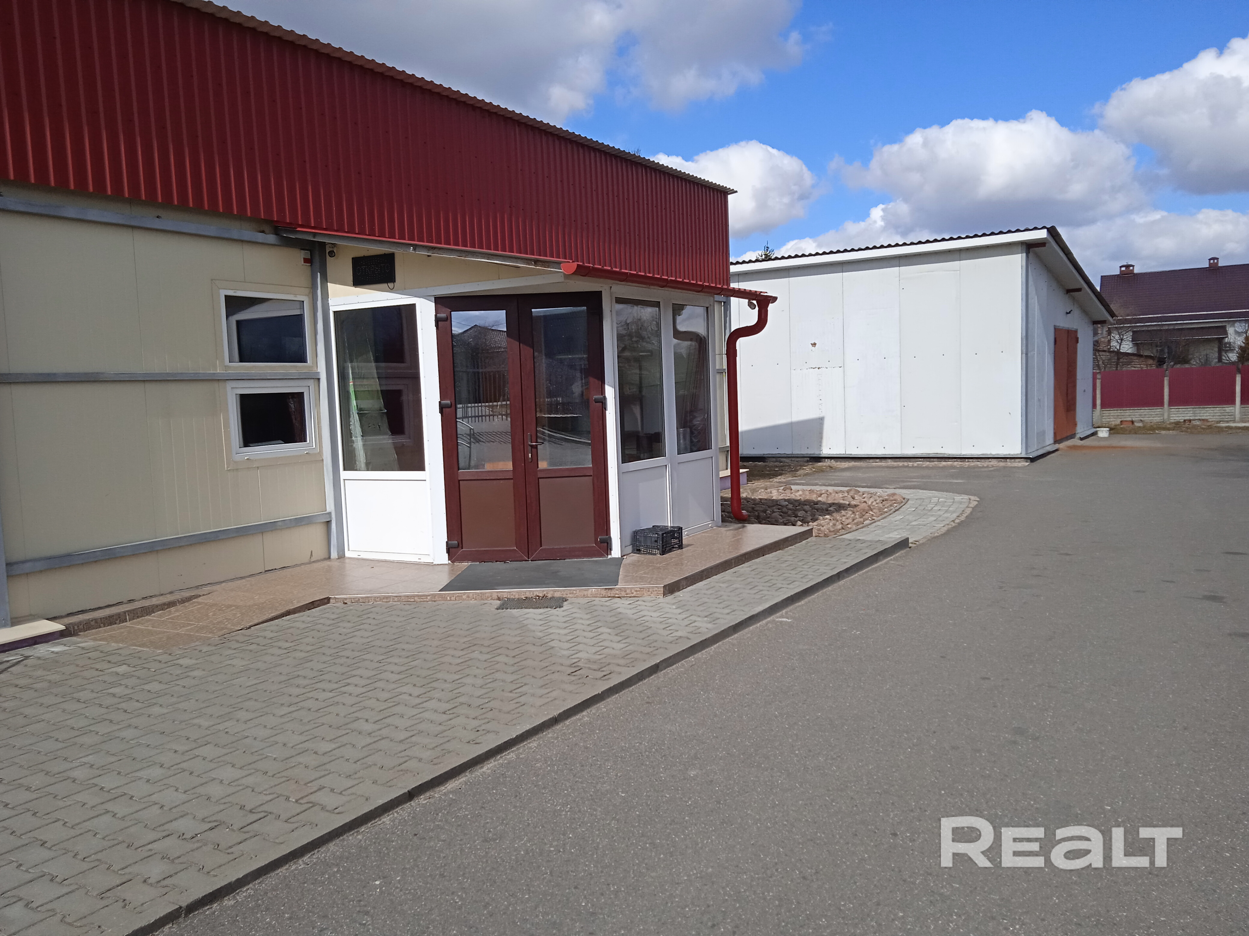 отдельно стоящее здание, огорожено, есть парковка, все заасфальтировано и выложено плиткой. Есть склад площадью 120м.
