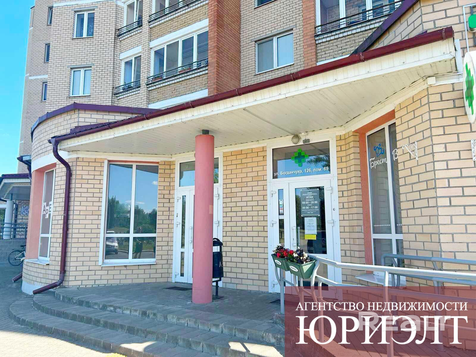 Сдаётся в аренду коммерческое торговое помещение по улице Богданчука, 126. Находится на первом (цокольном) этаже жилого дома. Помещение общей площадью 175,3 кв.м., состоит из торгового зала площадью 110,9 кв.м., служебных помещений (кабинетов) площадью 19.9 кв.м., 11,9 кв.м., двух санузлов и подсобного помещения. Технические характеристики помещения: полы - плитка; стены оштукатурены, окрашены; потолок - армстронг; двери, окна - ПВХ. Оборудована пожарная сигнализация, вентиляция, индивидуальные приборы учета электроэнергии и водоснабжения.