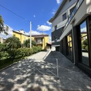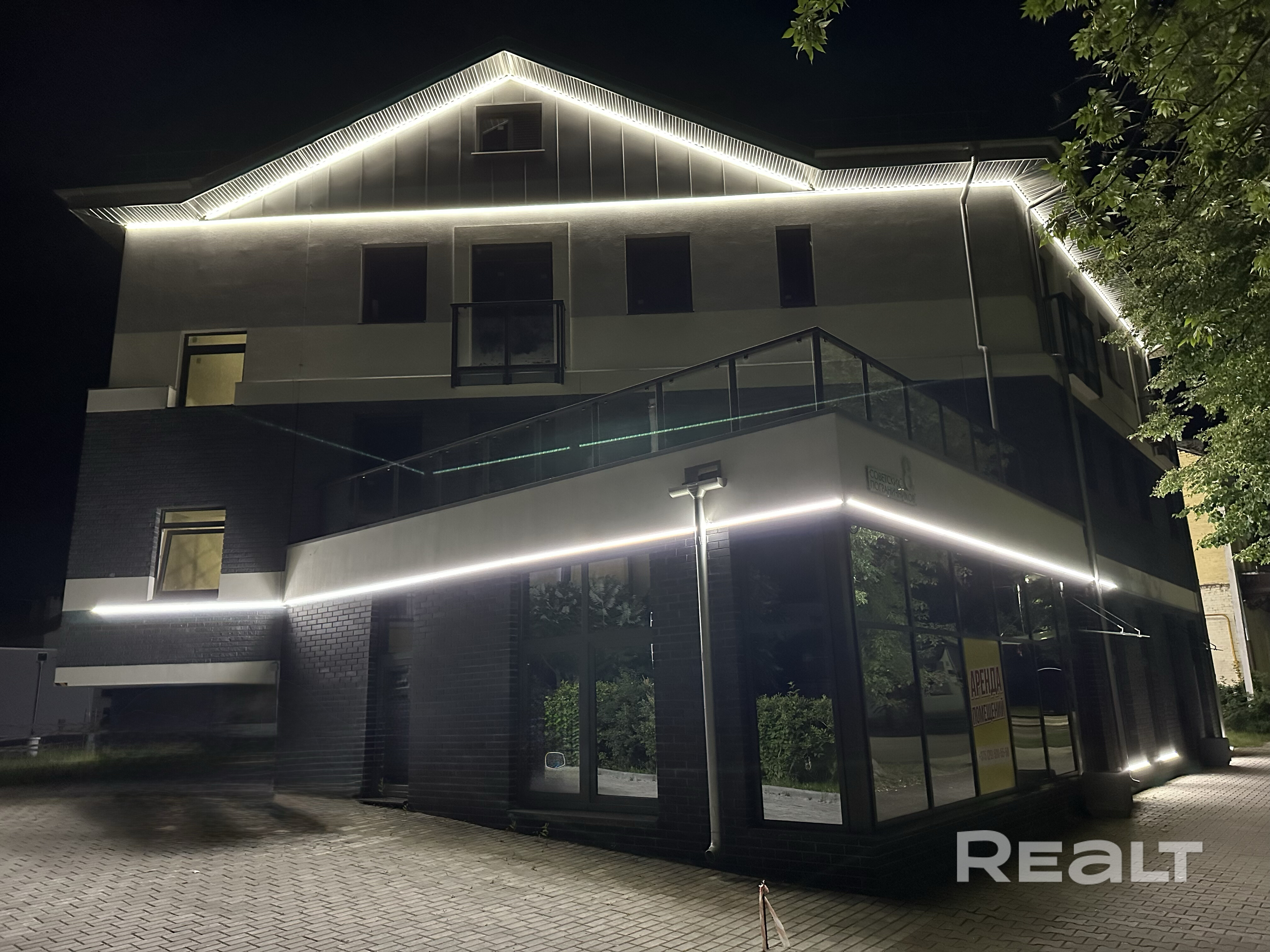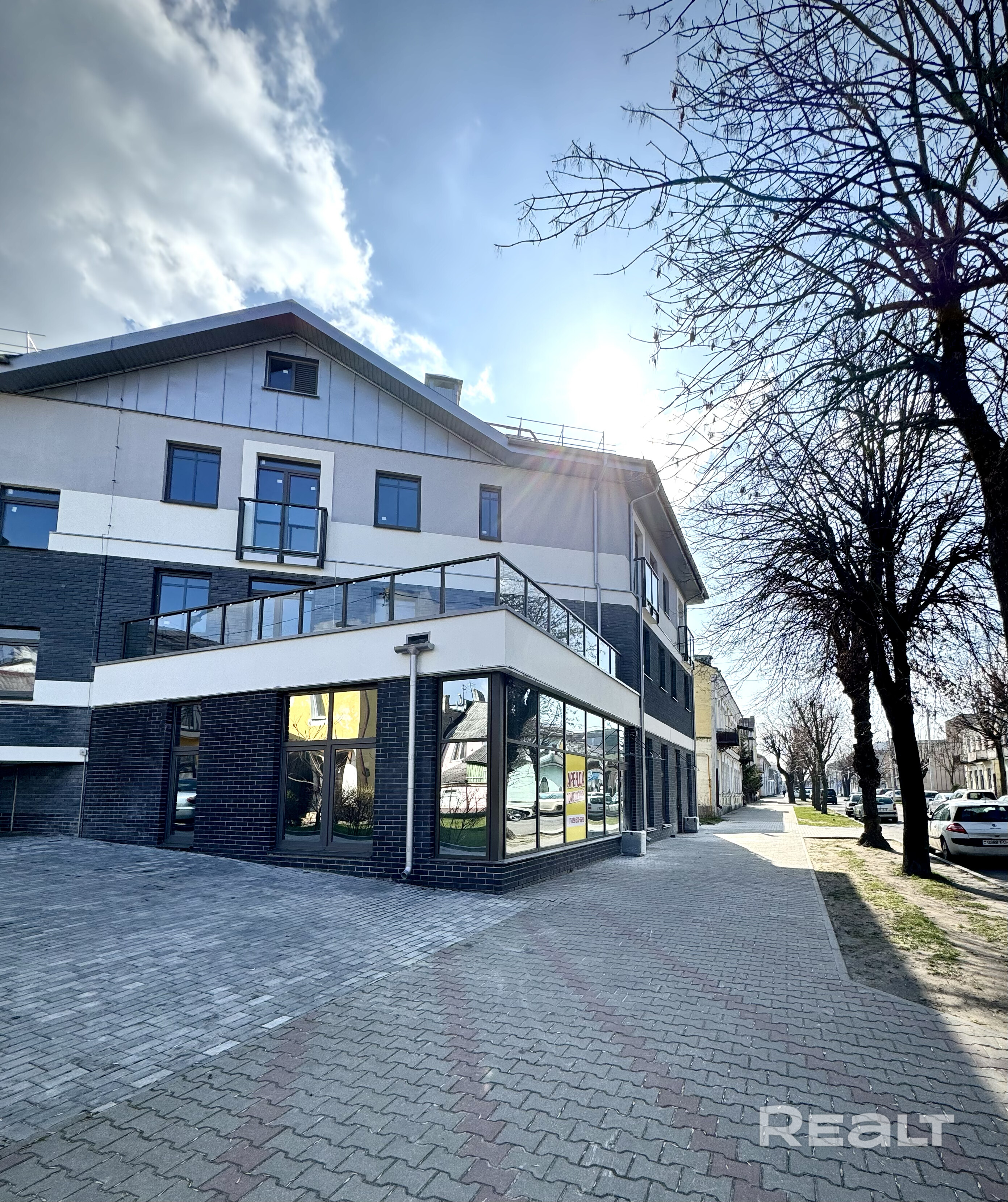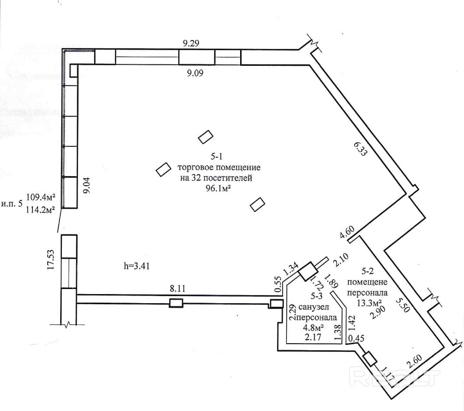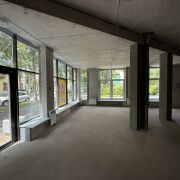 Торговое помещение общей площадью 114,2 м2 с отдельным входом •Большая площадь остекления в сочетании с высокими потолками в 3,4 метра •Торговый зал 96,1 м2, санузел и помещение персонала •Монолитный бетонный конструктив здания позволяет реализовать идеи по перепланировке •Площадка рядом с помещением вымощена мелкоштучной тротуарной плиткой, что позволяет выделить землю для установки террасы •Расположение окон позволяет оборудовать дополнительную дверь для выхода на террасу