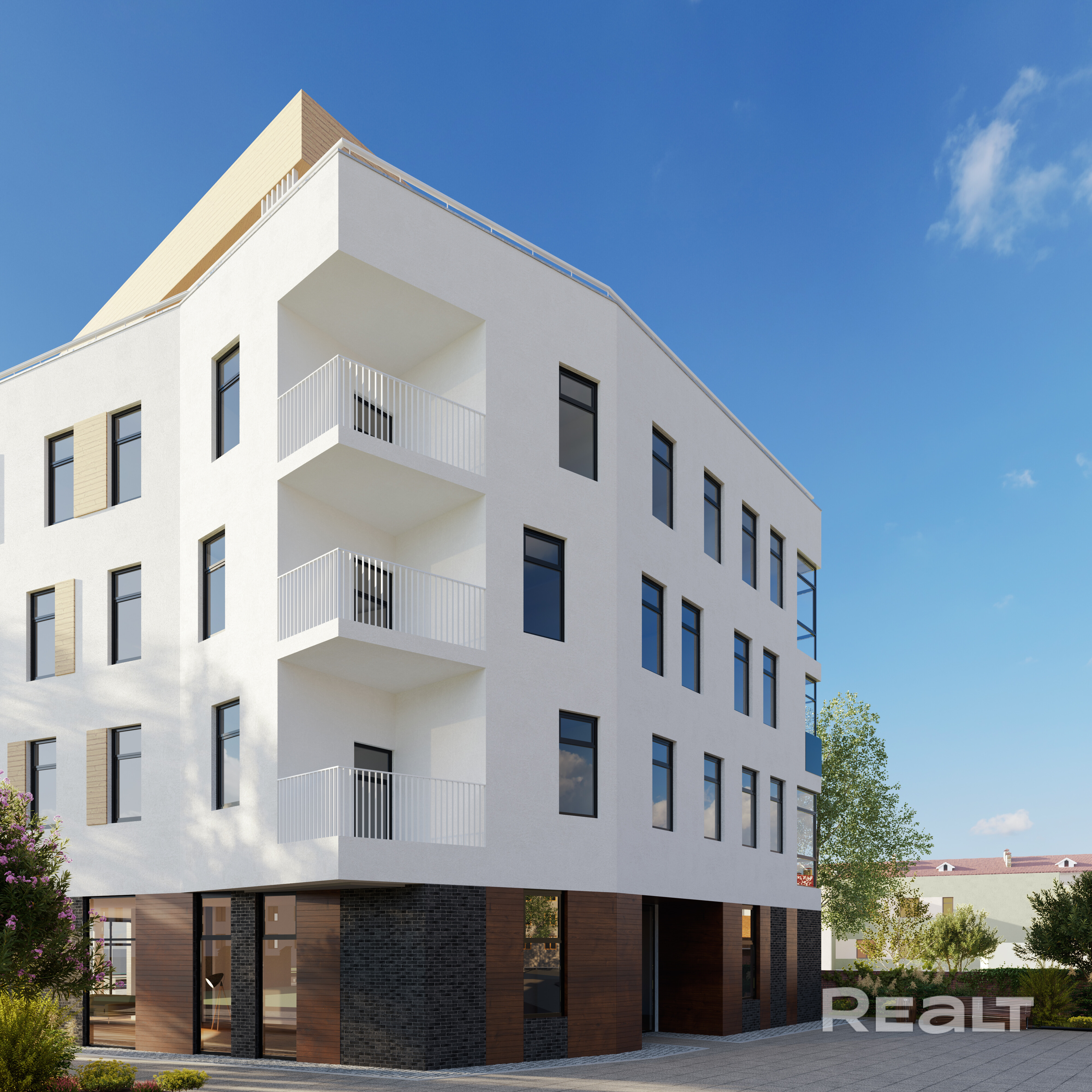 Административное помещение площадью 72,4 м2 новом клубном доме «Айсберг» в идеальной локации на пересечении Гоголя и Карбышева • Отдельный вход без ступеней с улицы Карбышева • Панорамное остекление • Потолки 3,6 метра • Монолитный конструктив здания • Оживленный пешеходный и автомобильный трафик