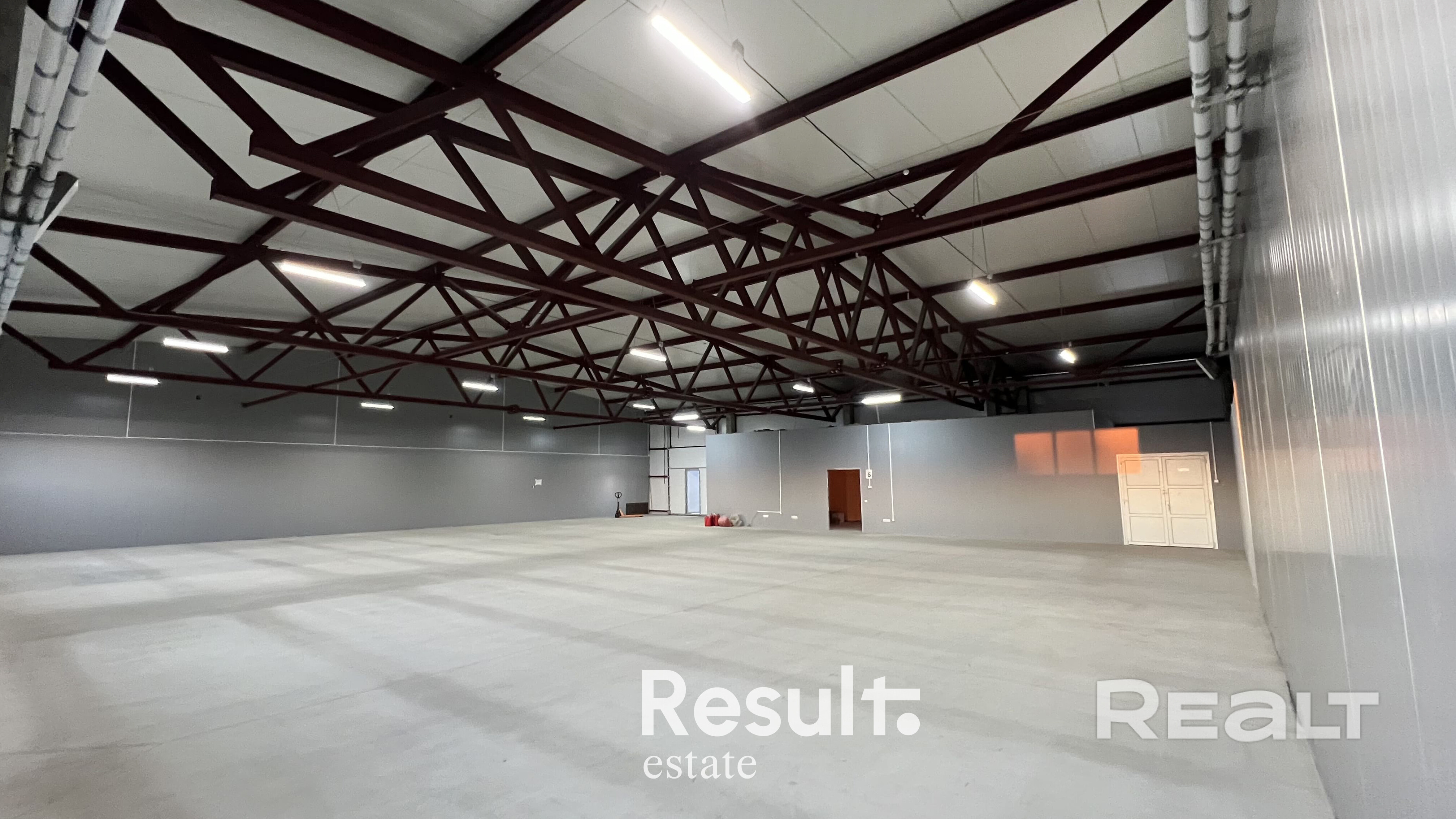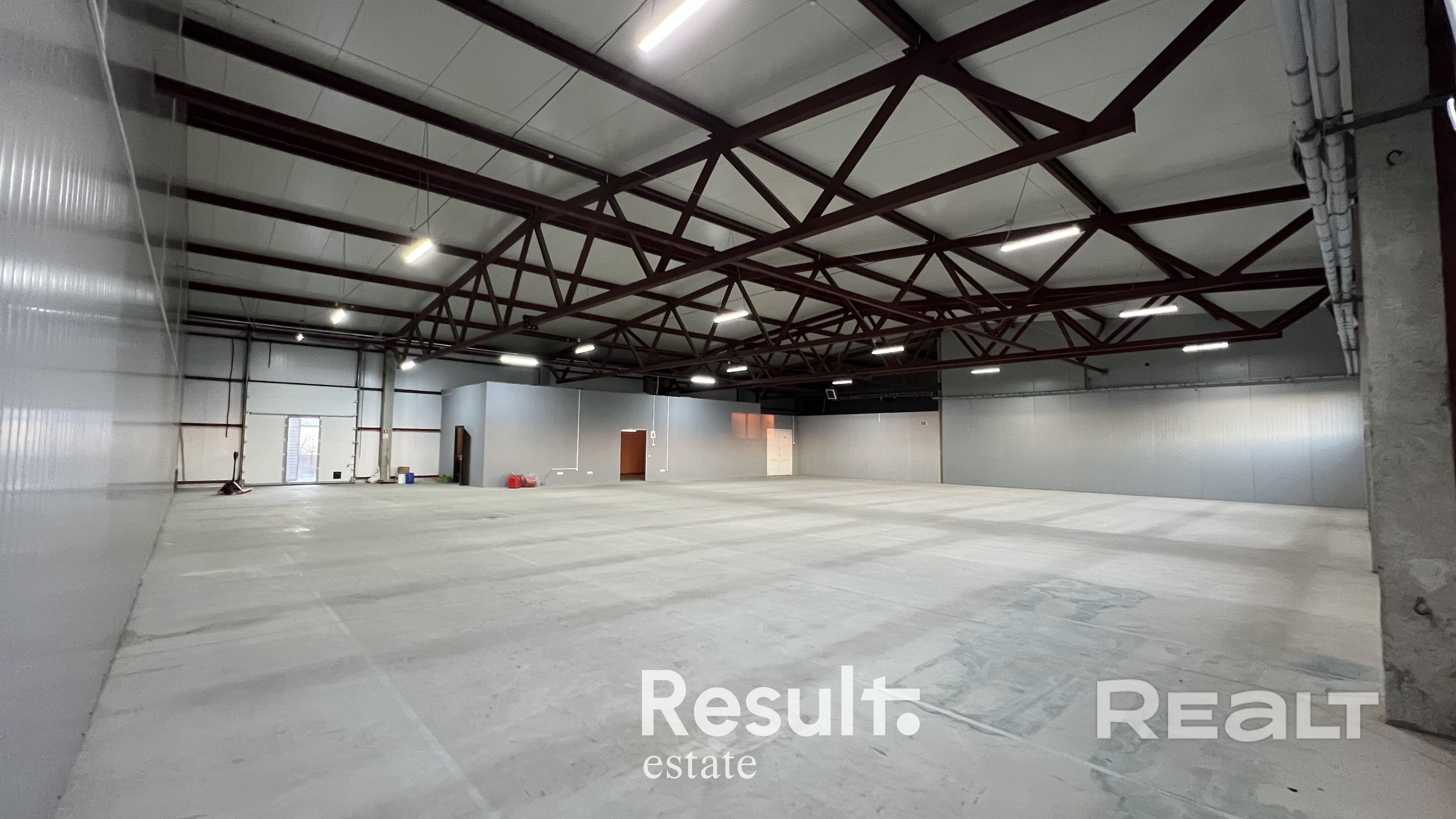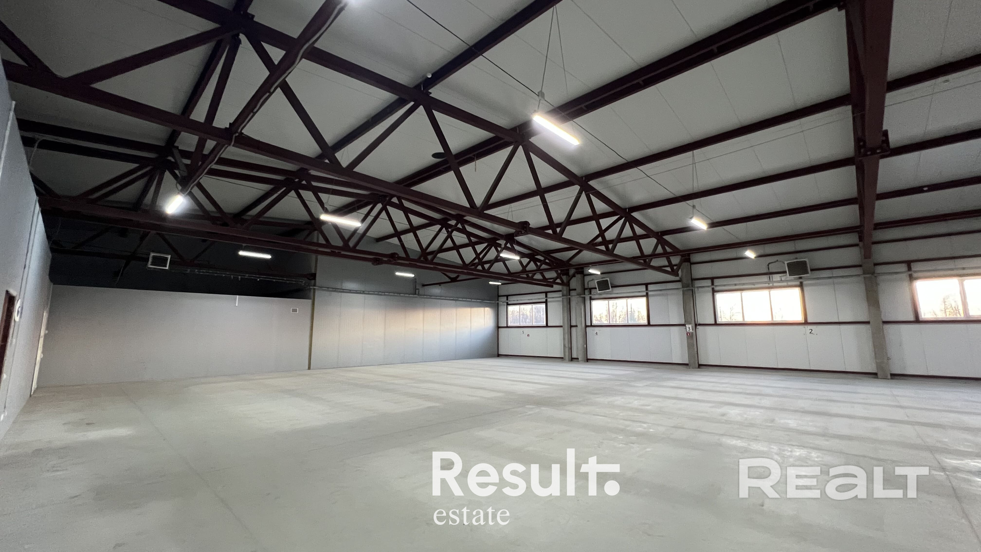 Стены - сандвич панели, метал. Крыша - сэндвич панели, метал. Окна - Стеклопакеты, ПВХ профиль. Наливные полы.