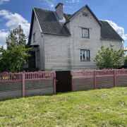 Дом из силикатных блоков, обложенный белым кирпичом. Построен по индивидуальному проекту в 3 уровня, расположенный в Заполье, в километре от центральной районной больницы г. Пинска. Общая площадь - 290 кв.м., жилая площадь - 161 кв.м., кухня – столовая - 22 кв.м. Экологичная массивная доска - полы, межкомнатные двери и лестница. Санузел плитка. Стены оштукатурены под чистовую отделку. Отопление водяное, газовым котлом (пр-ва Германия). В доме массивный камин.