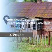 Деревянный дом в д. Ужики. Две комнаты. Площадь 39 кв.м. Печное отопление, есть электроэнергия.Участок около 25 соток (в стадии окончательных замеров). На территории есть сарай, колодец, погреб. Хорошие подъездные асфальтированные пути, до остановки транспорта 100 метров.