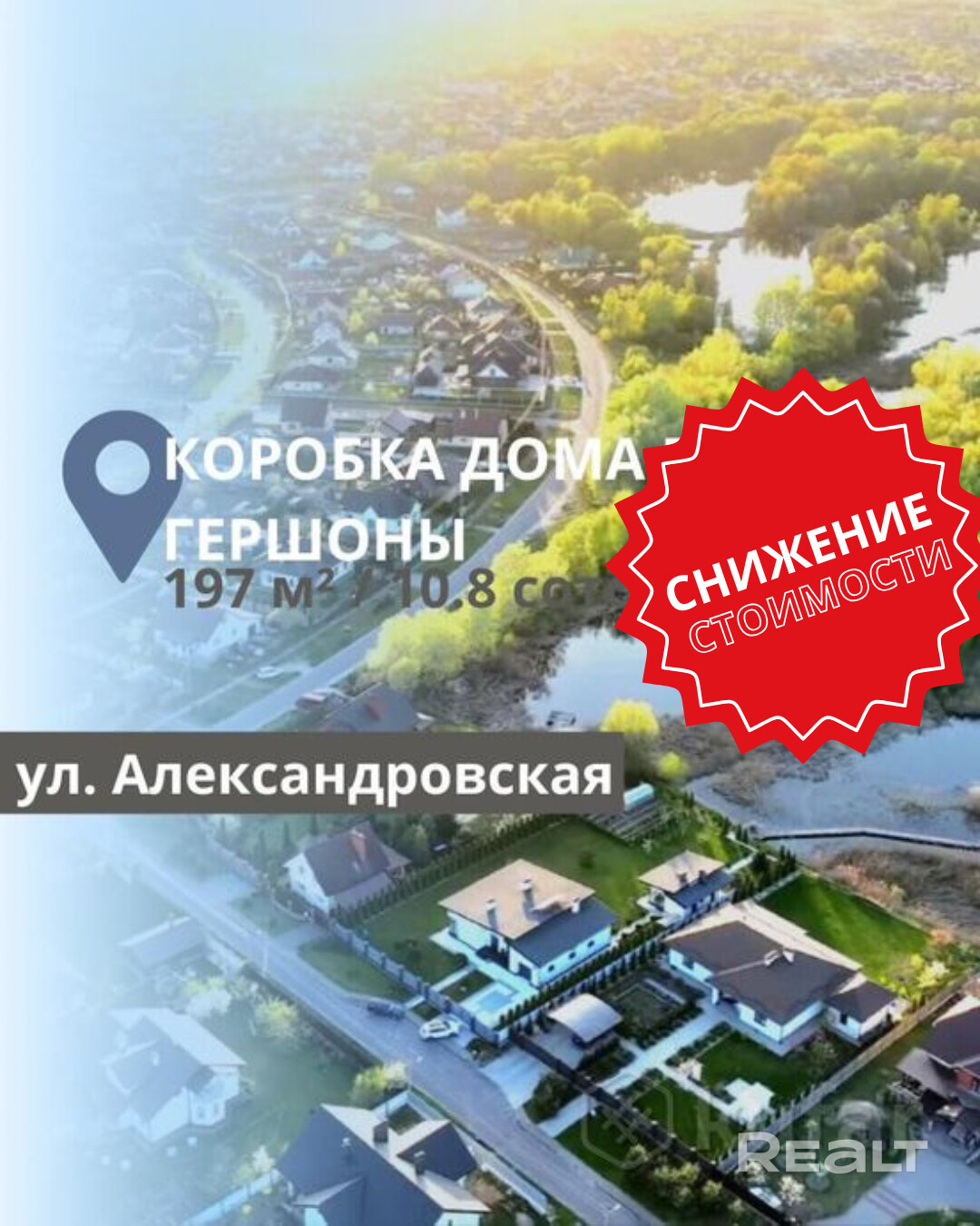 Коробка жилого дома в Гершонах. Общая площадь 197 м2, площадь, жилая 120 м2 (мансардный этаж 88,8 м2), площадь кухни-столовой 37,5 м2. Материалы дома: блок газосиликатный, утеплен и оштукатурен; крыша шифер; фундамент ленточный бетонный; перекрытия деревянные. Установлены окна ПВХ, входные металлические двери, на полу залита черновая стяжка. Участок 10,8 сотки, угловой, огорожен по периметру декоративным забором. На участке так же есть готовый гостевой дом, гараж и баня, барбекю и много садовых деревьев. Коммуникации: электричество на участке (в гостевом доме, гараже и бане); газ по улице, вода скважина/гидрофор; канализация местная, разведена по дому; отопление твердотоплевный котел в гостевом доме. На участке оборудована зона барбекю. Подъездные пути асфальт. Чистейшее озеро в 200 метрах от дома, магазин через дорогу, до остановки общественного транспорта 5 минут ходьбы. Метка на карте указана приблизительно. Точный адрес оглашается при согласовании осмотра.
