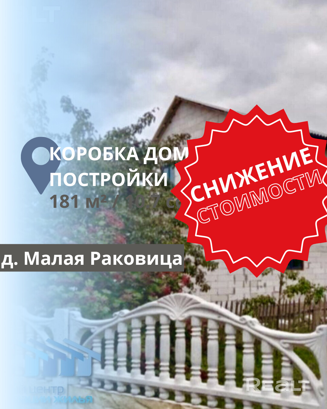 Срочная продажа! Коробка двухэтажного жилого дома 2021 года постройки в живописном пригороде Бреста. Стены из газосиликатных блоков, кровля – шифер. Общая площадь 180,88 кв.м, жилая 76,48. Разработан проект для пятикомнатного жилого дома, есть кухня 13,34 кв.м, санузел и вспомогательные помещения. Предусмотрены встроенный гараж и летняя терраса. Высота потолка 2,70 м.