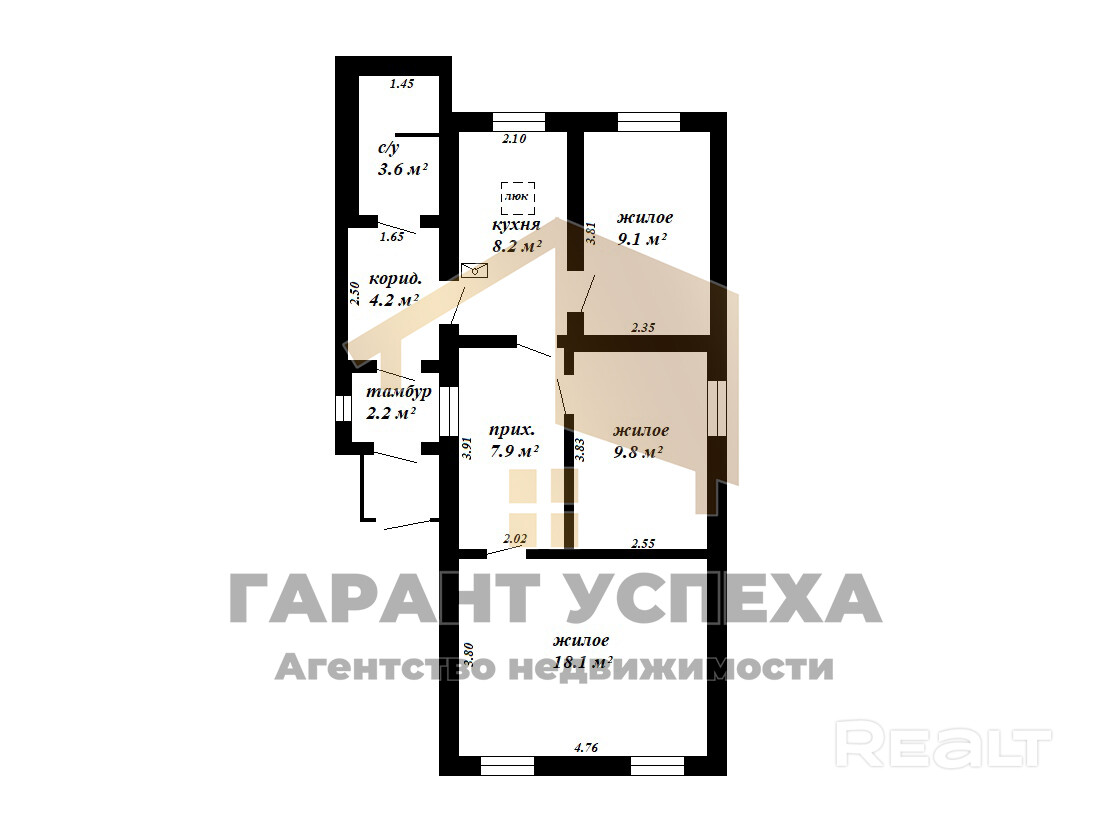 ЧУП «Гарант успеха», УНП 290472700, лицензия № 02240/137 от 20.10.2006 г., договор на оказание риэлтерских услуг №238/1 от 21.03.2023 г.
