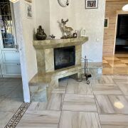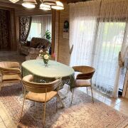 Одноуровневый дом 2015 года постройки. Площадь общая - 179,3 кв.м., жилая - 83,5 кв.м, площадь кухни - 21 кв.м. Стены - брус профилированный, крыша металлочерепица, окна - пластиковые, входная дверь металлическая. Дом полностью готовый к комфортному проживанию, выполнен качественный ремонт в светлых тонах. В кухне, гостиной и холле на полу уложена итальянская плитка. Кухня из массива. Новые межкомнатные двери фирмы "PORTE VISTA". В санузлах плитка светлых оттенков. Дом очень теплый и уютный. В доме есть просторный холл 20 кв.м., кухня 21 кв.м., гостиная с действующим камином 30.9 кв.м., 3 спальни, 2 санузла и большая гардеробная, терраса с выходом из кухни.