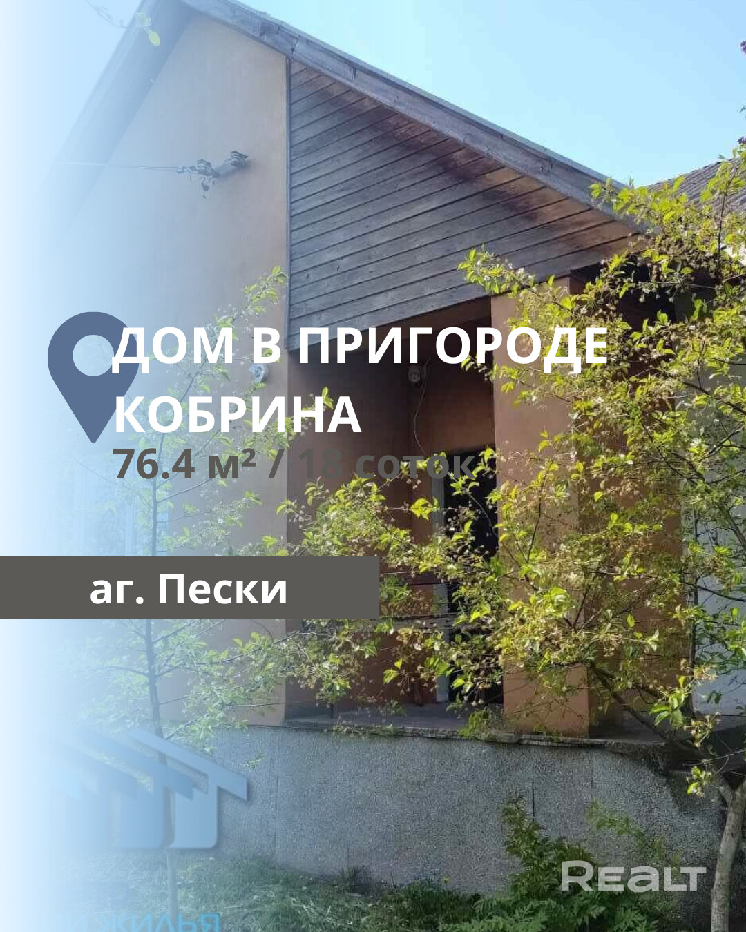Дом кирпичный 1987 года постройки состоит из 4 комнат, кухни, раздельного санузла. Отопление - газовое, вода- центральная, канализация - местная, электричество - есть.Общая площадь дома 76,4, жилая 50,2, кухня 9,3. Высота потолков 2,73 м. Дом расположен на участке площадью 18 соток. Также имеется погреб и кирпичный сарай/гараж с навесом. Огород обработан, высажены декоративные и плодовые растения. Дом расположен в месте с хорошо развитой инфраструктурой: магазины, аптека, ФАП, школа, дет.сад, почта, хорошее транспортное сообщение с Брестом и Кобрином.