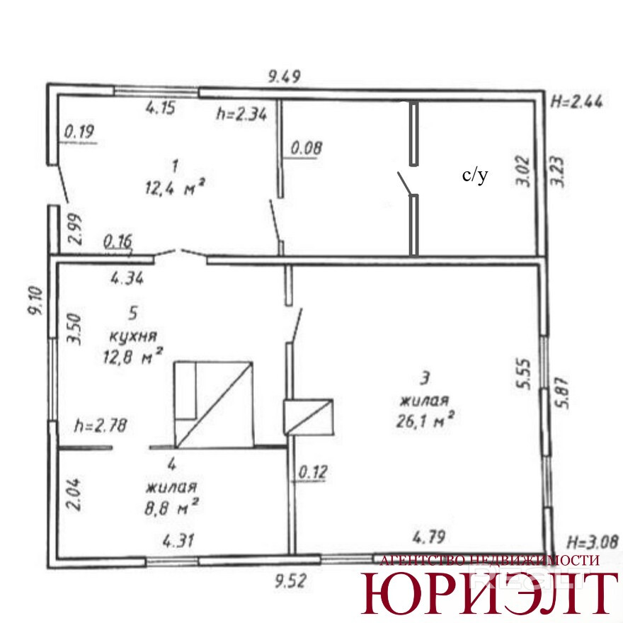 Площадь общая по СНБ – 75.2 м2, общая жилая - 47.7 м2 , жилая – 34.9 м2, кухня – 12.8 м2.